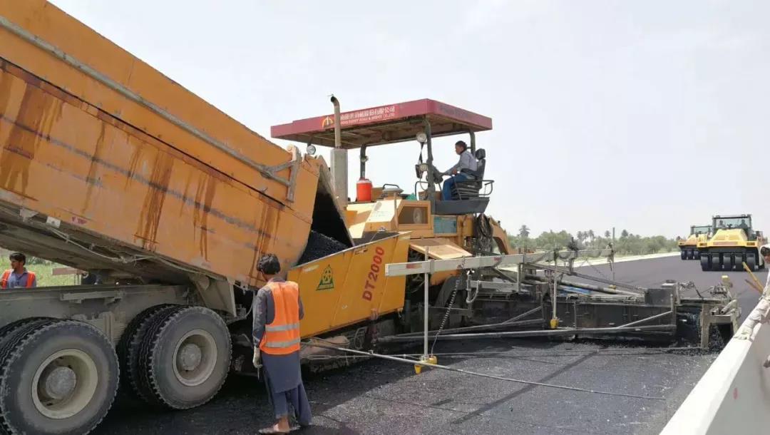 云南陽(yáng)光道橋購(gòu)買(mǎi)的中大DT1600抗離析攤鋪機(jī),十年無(wú)大修!在巴基斯坦PKM路面二分部瀝清中面層攤鋪?lái)槙尺M(jìn)行中!